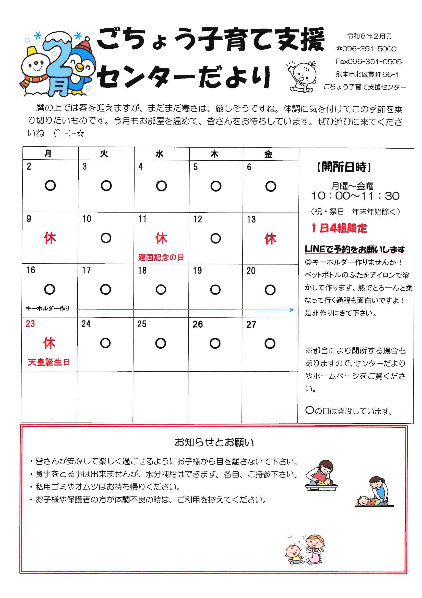 ごちょう子育て支援センター2月の予定表